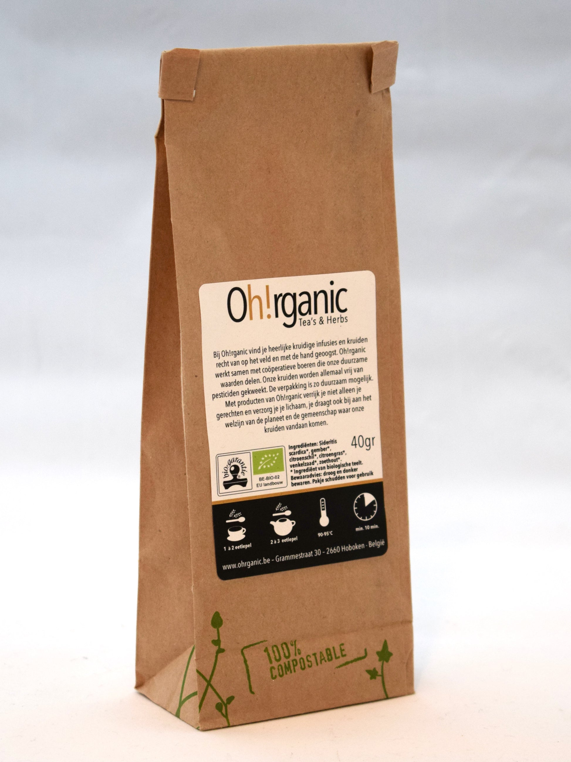 Ingrediënten: Griekse bergthee (sideritis scardice), gember, citroenschil, citroengras, venkel en zoethout allemaal van biologische oorsprong.