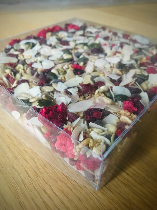 Ik gebruik 100% natuurlijke kwaliteit zonder brol. Dat wil in de eerste plaats zeggen pure, eerlijke, niet bewerkte producten. Daarnaast bevatten de producten geen pinda's, zout, extra suikers, vetten, zuivel en bewaarmiddelen. Zonder al diene brol is da echt super smaakvol.